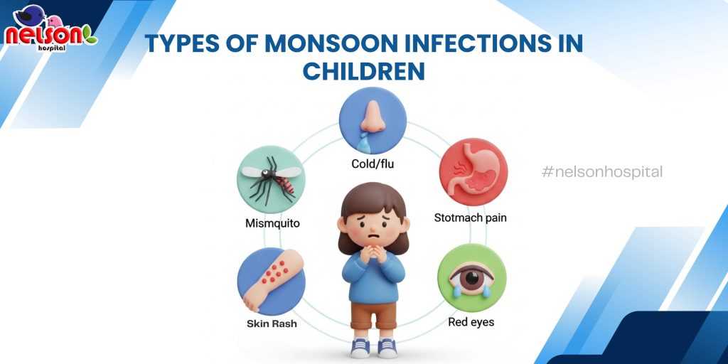 Monsoon brings much-needed relief from the scorching heat, but it also creates a breeding ground for various infections, especially in children. The increased humidity, water stagnation, and temperature changes during the rainy season make kids more vulnerable to bacterial, viral, and fungal infections. As a parent, it’s essential to understand the most common monsoon infections in children, their symptoms, potential risks, and when to seek treatment. At Nelson Hospital, our pediatric experts provide timely diagnosis and effective care to ensure your child stays healthy throughout the season.